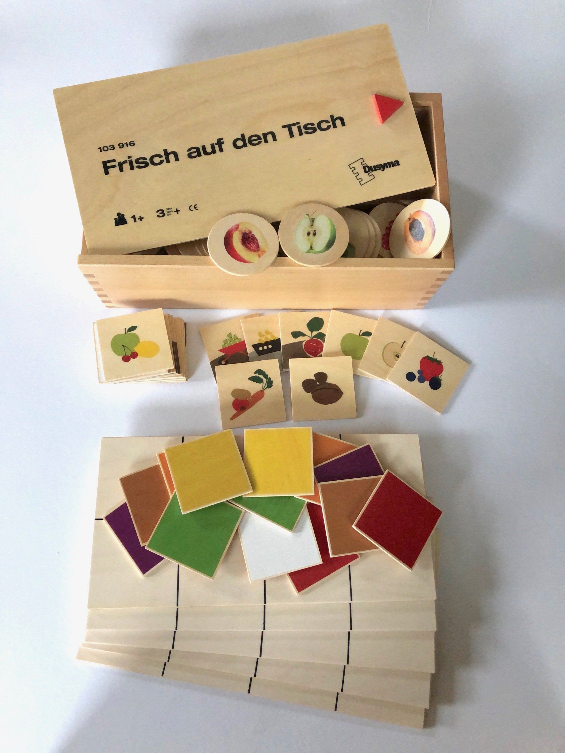 ein freies Sortier- und Legespiel zum Thema Ernährung mit 110 Bildern auf Holz sowie vielen Spielmöglichkeiten.
